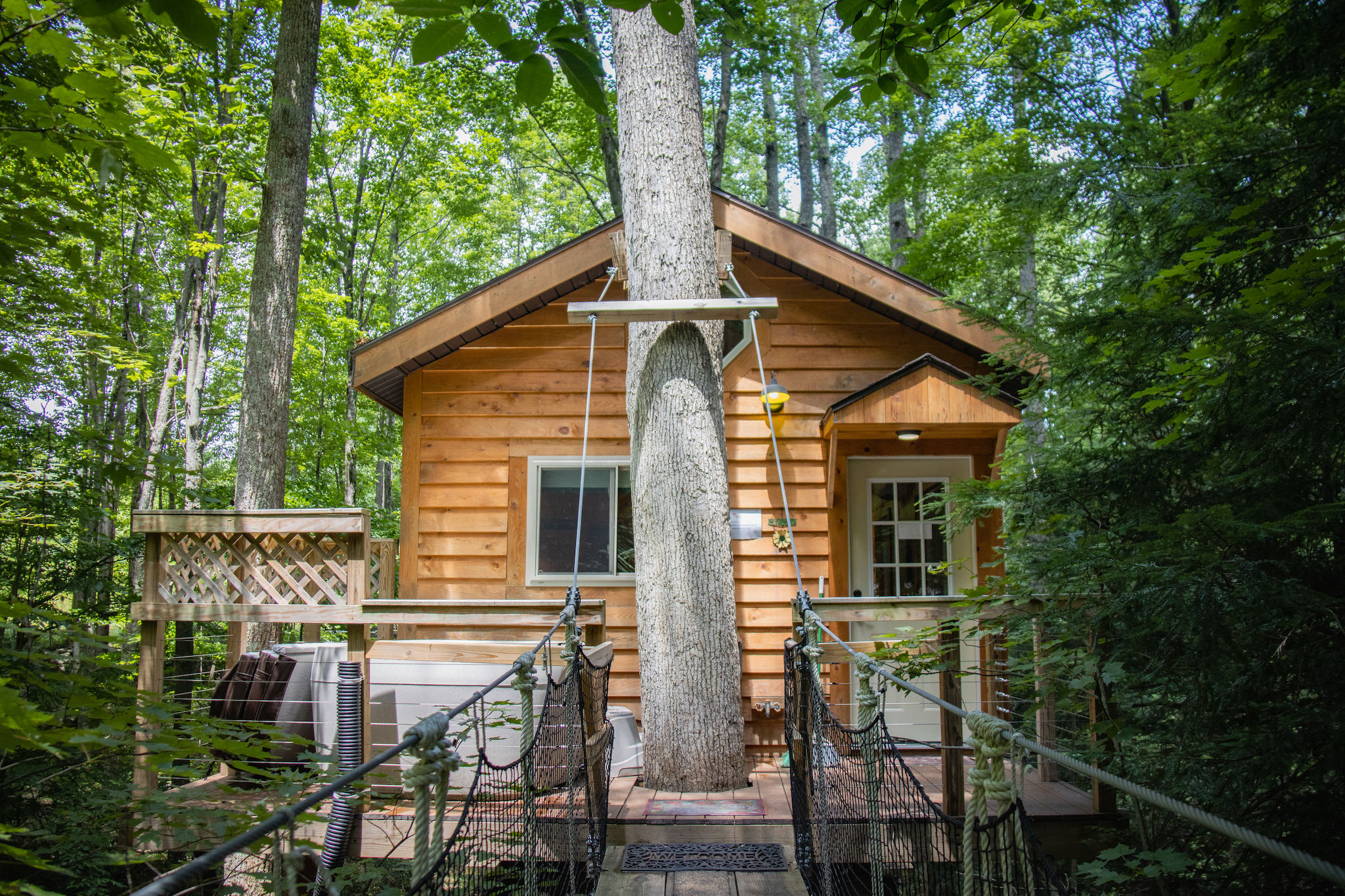 Near New River Gorge National Park, West Virginia. Choose from our many luxurious log cabin homes, romantic yurts, authentic treehouses or try “glamping" in a safari style tent.